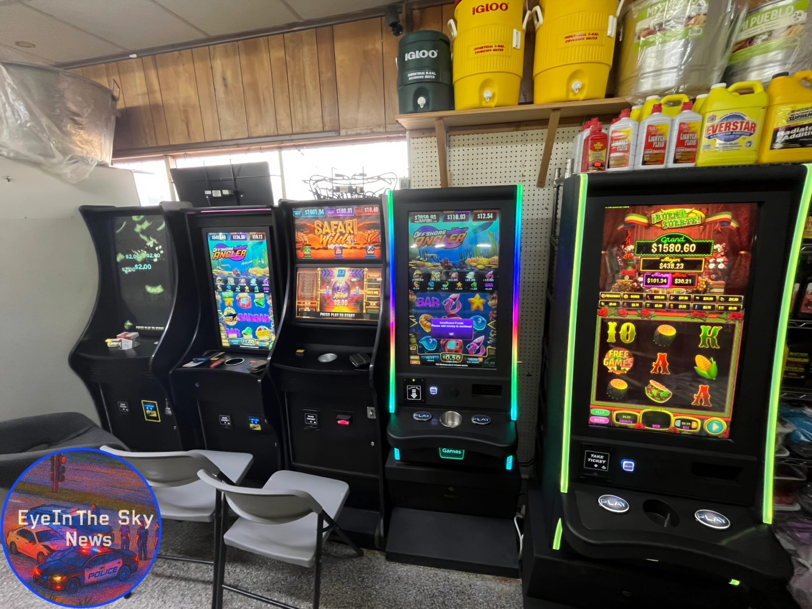 - Mario Vargas Garcia (DOB 11/17/1986): Charged with keeping a slot machine, possessing slot machine, tampering with evidence for removing machines before detectives arrived (ICE hold, enhanced charges due to illegal immigration status).